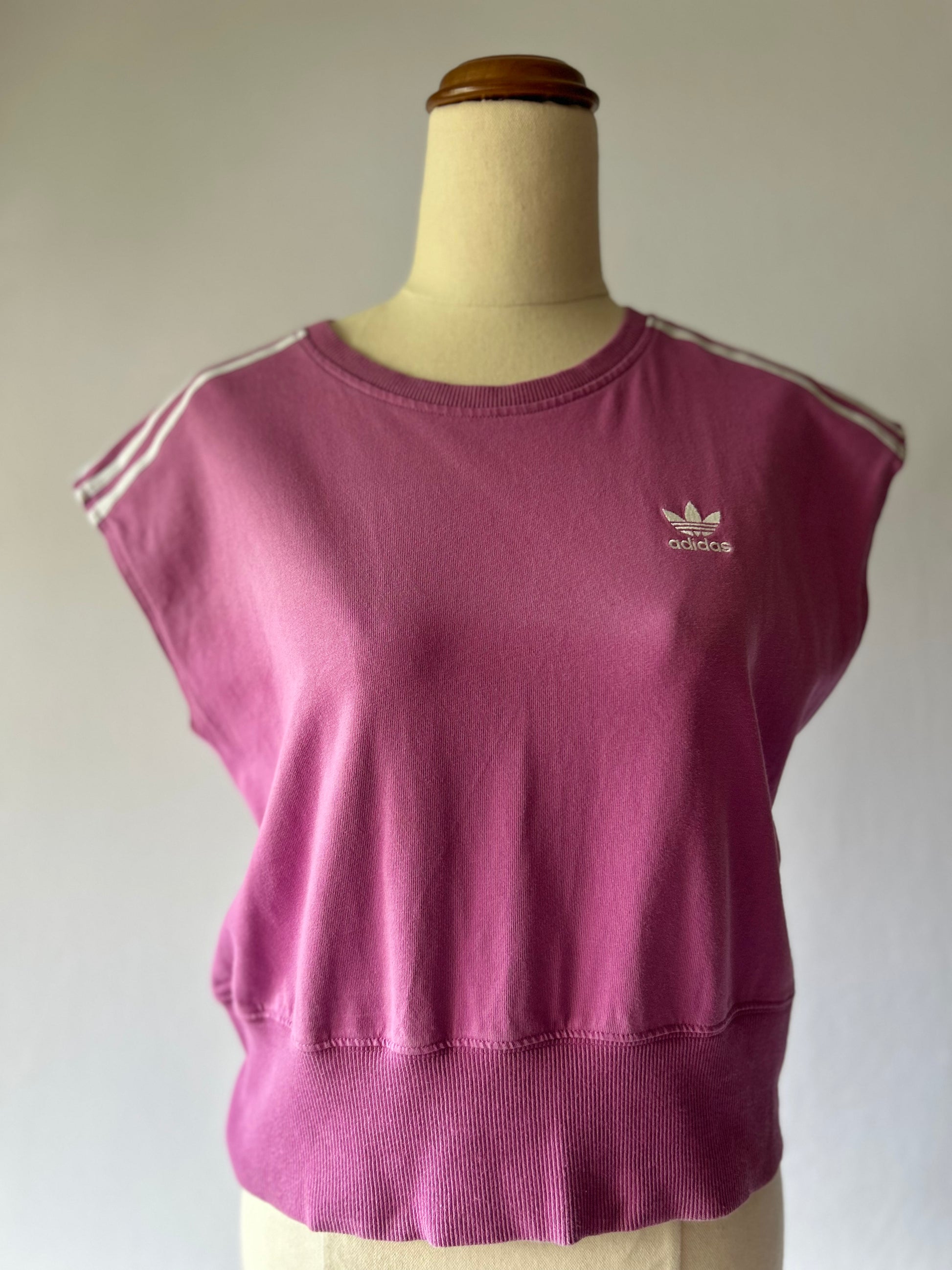 Step up your street style with this authentic Adidas Originals Cropped T-Shirt. This top comes in a trendy, faded magenta or muted berry color, giving it a cool, pre-loved vintage vibe.
