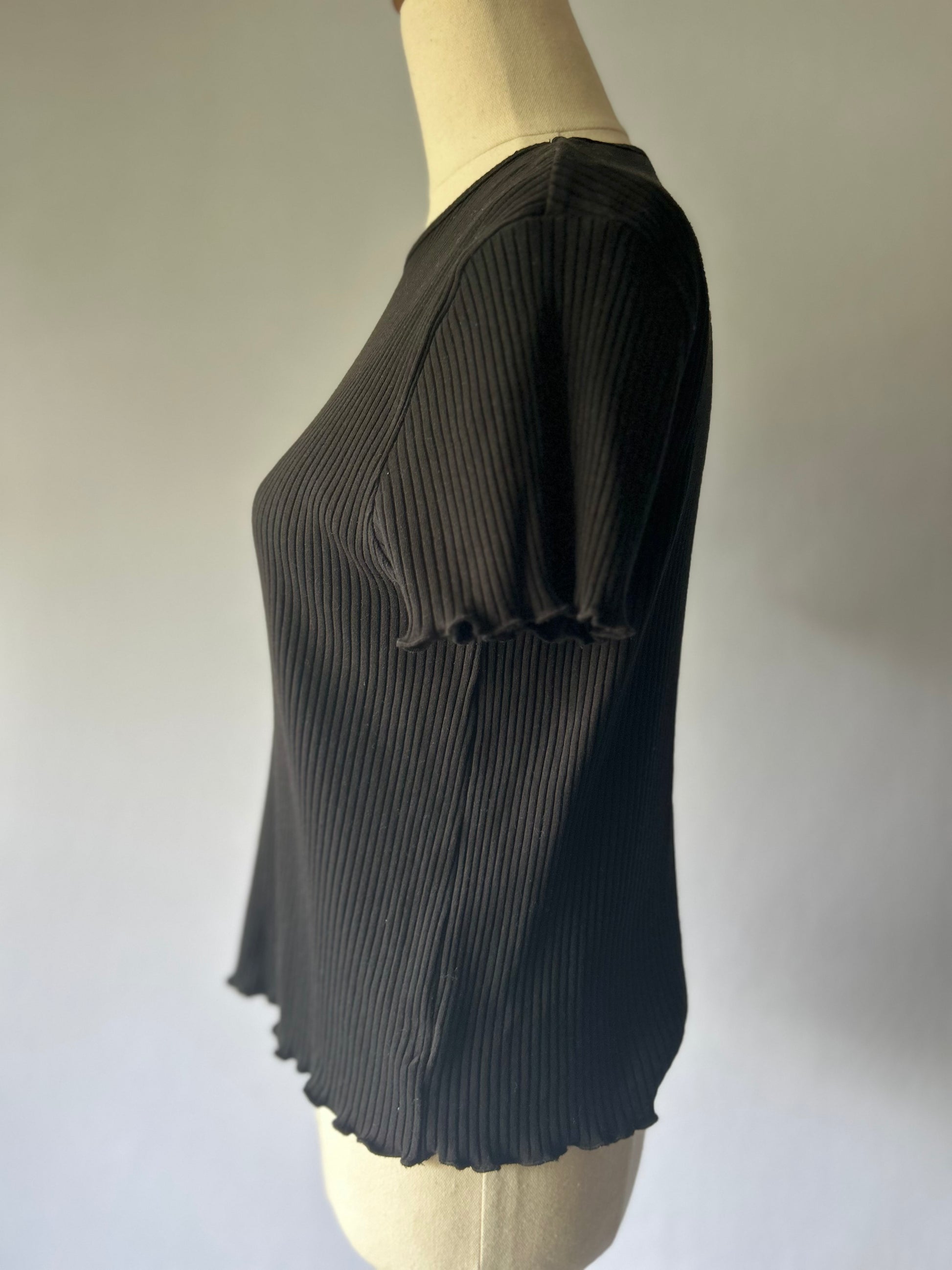A versatile black cropped top in size L, crafted from a soft and breathable blend of 95% cotton and 5% elastane. The cotton fabric ensures comfort, while the touch of stretch offers a flattering fit. Perfect for pairing with high-waisted jeans, skirts, or layering under blazers for an effortless modern look.