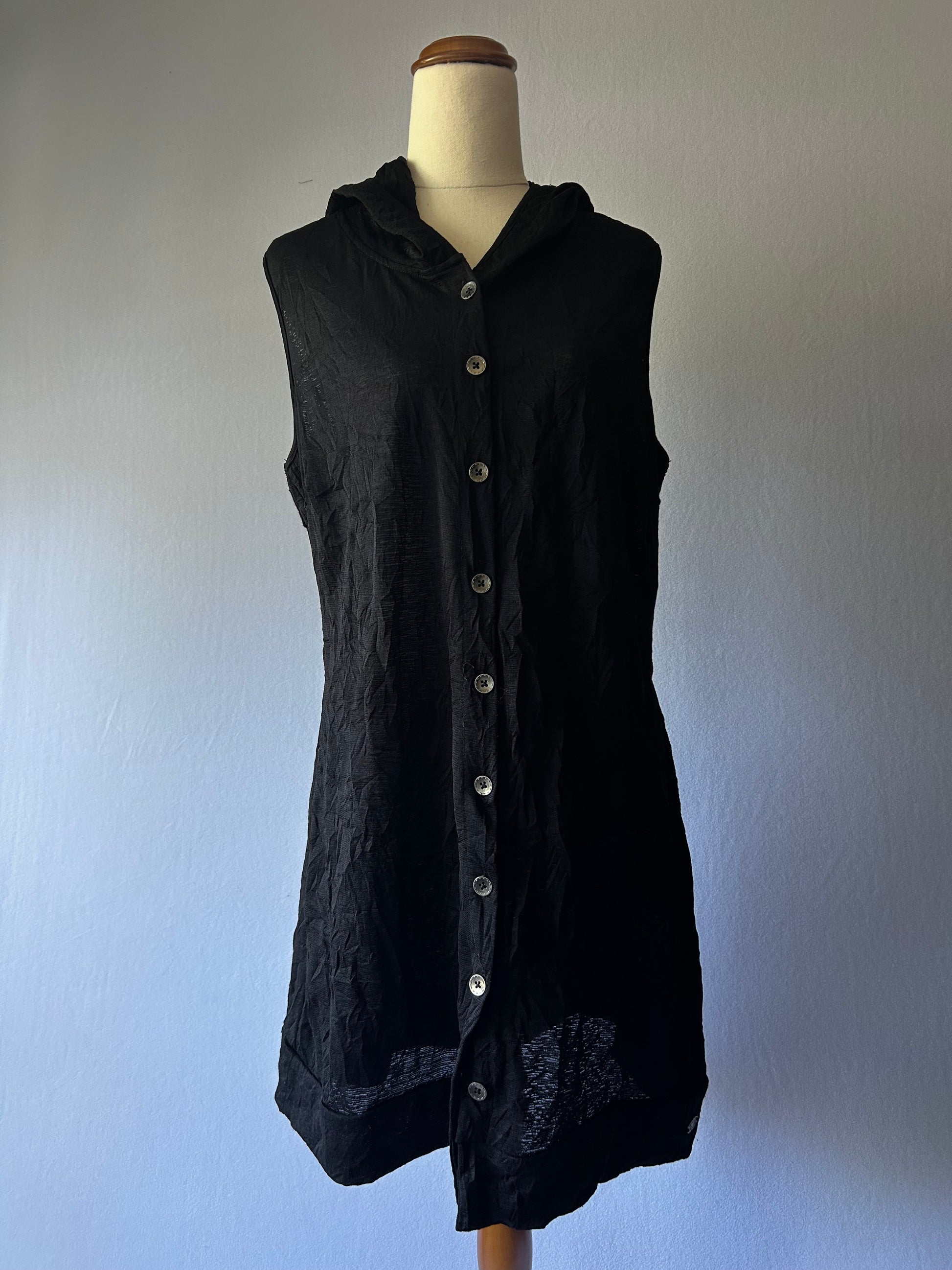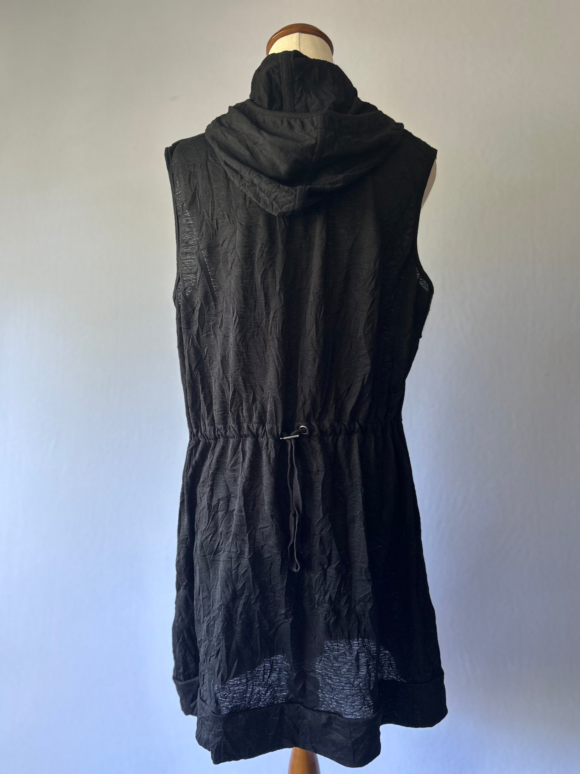 Sleek and versatile, this black long vest is designed with a modern hood and a relaxed silhouette. Made from a soft polyester–elastane blend (97% polyester, 3% elastane), it offers comfort and a subtle stretch for easy layering.