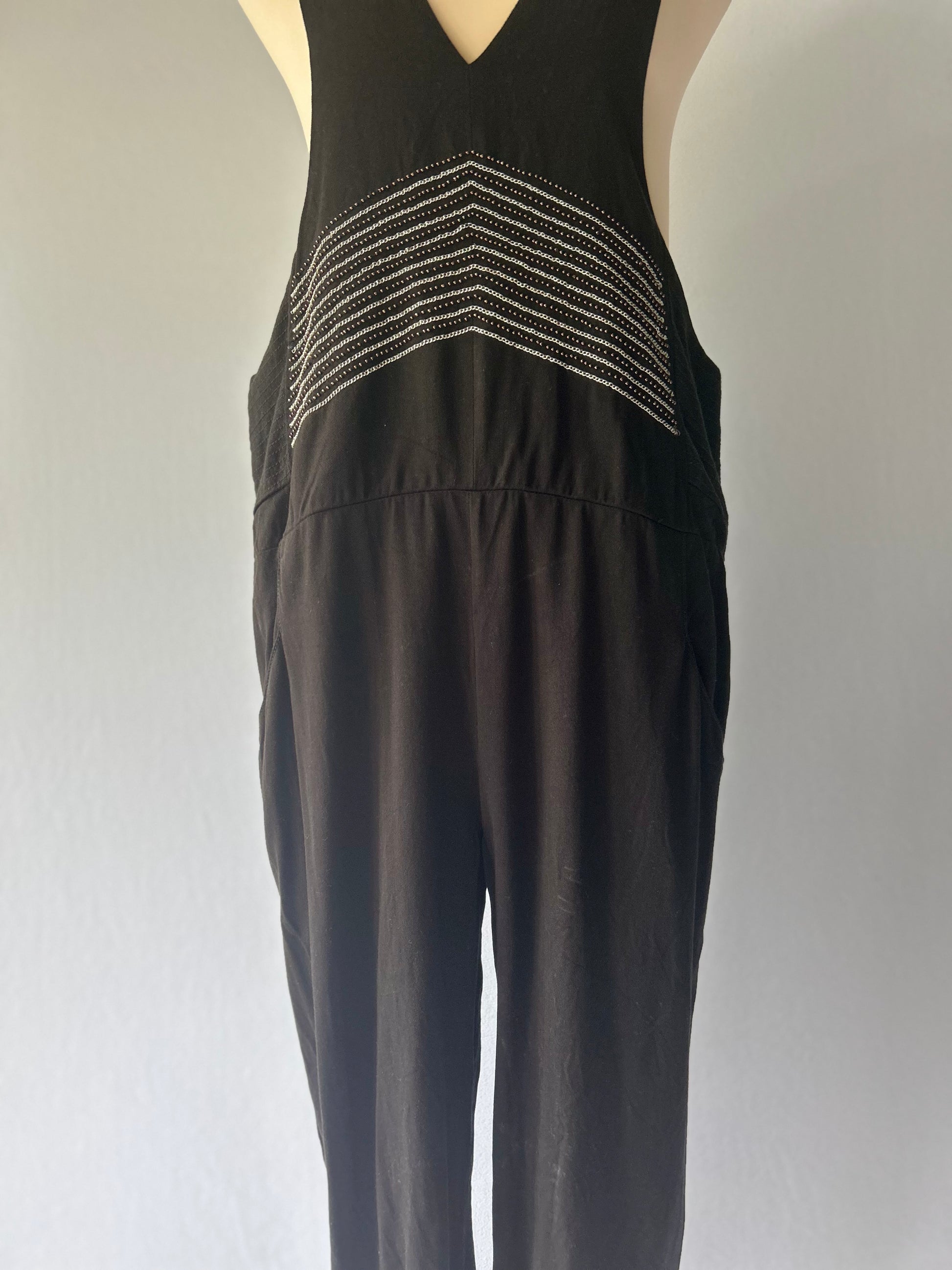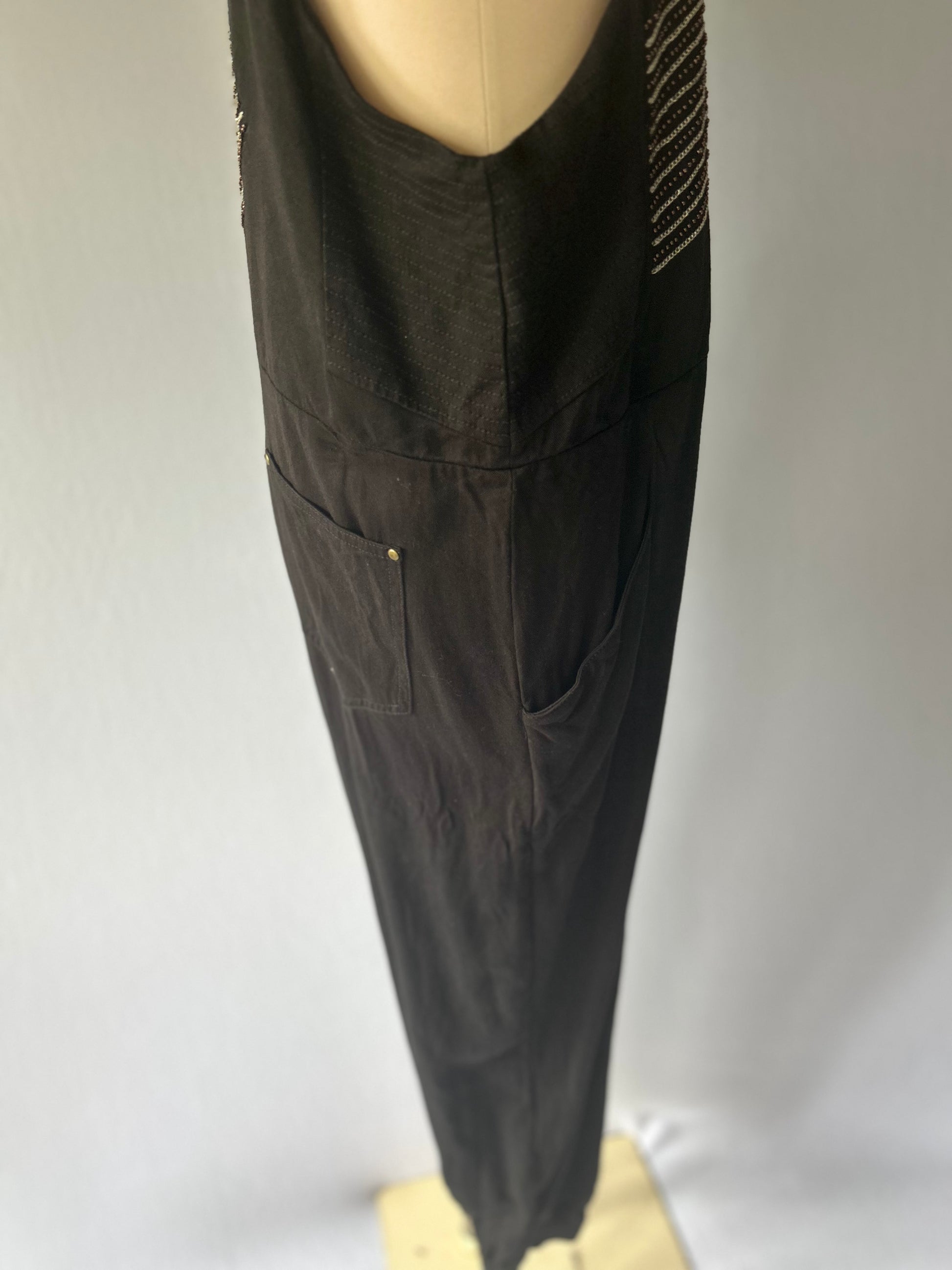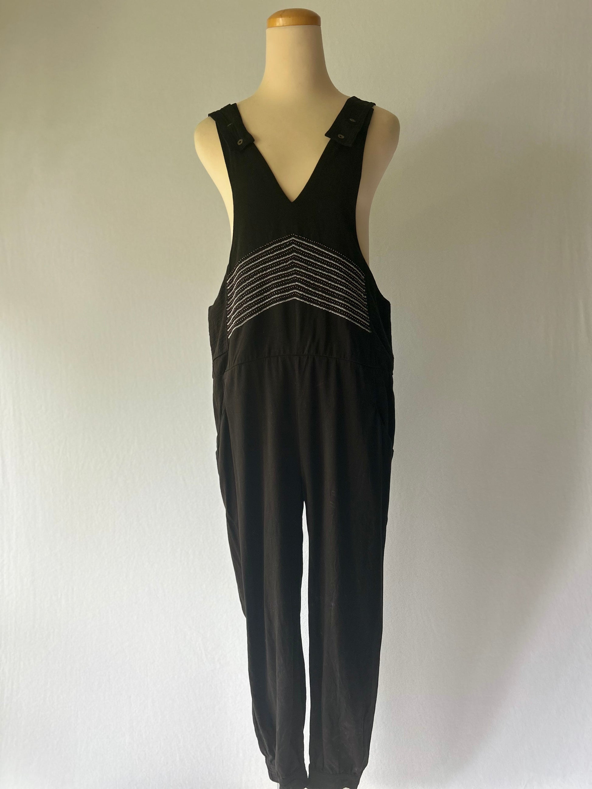 Black Tencel Jumpsuit with Embroidered Detail - Size 2 / M