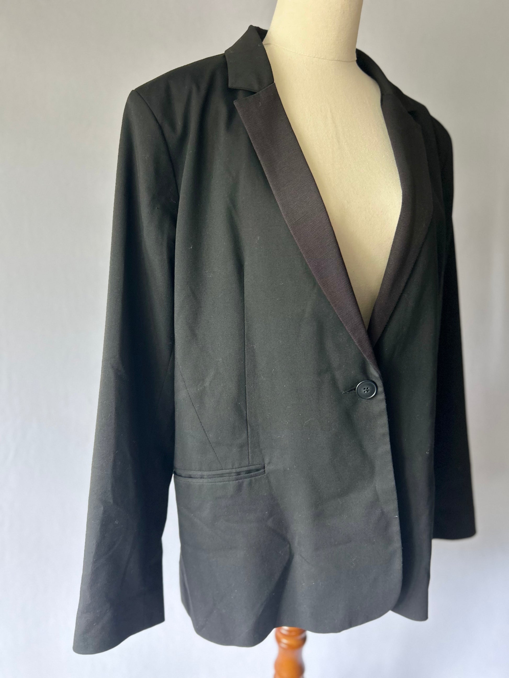 A timeless essential, this classic black blazer is designed to bring sophistication and versatility to your wardrobe. Crafted from a comfortable polyester-viscose blend with a touch of elastane, it offers a structured fit while allowing ease of movement.