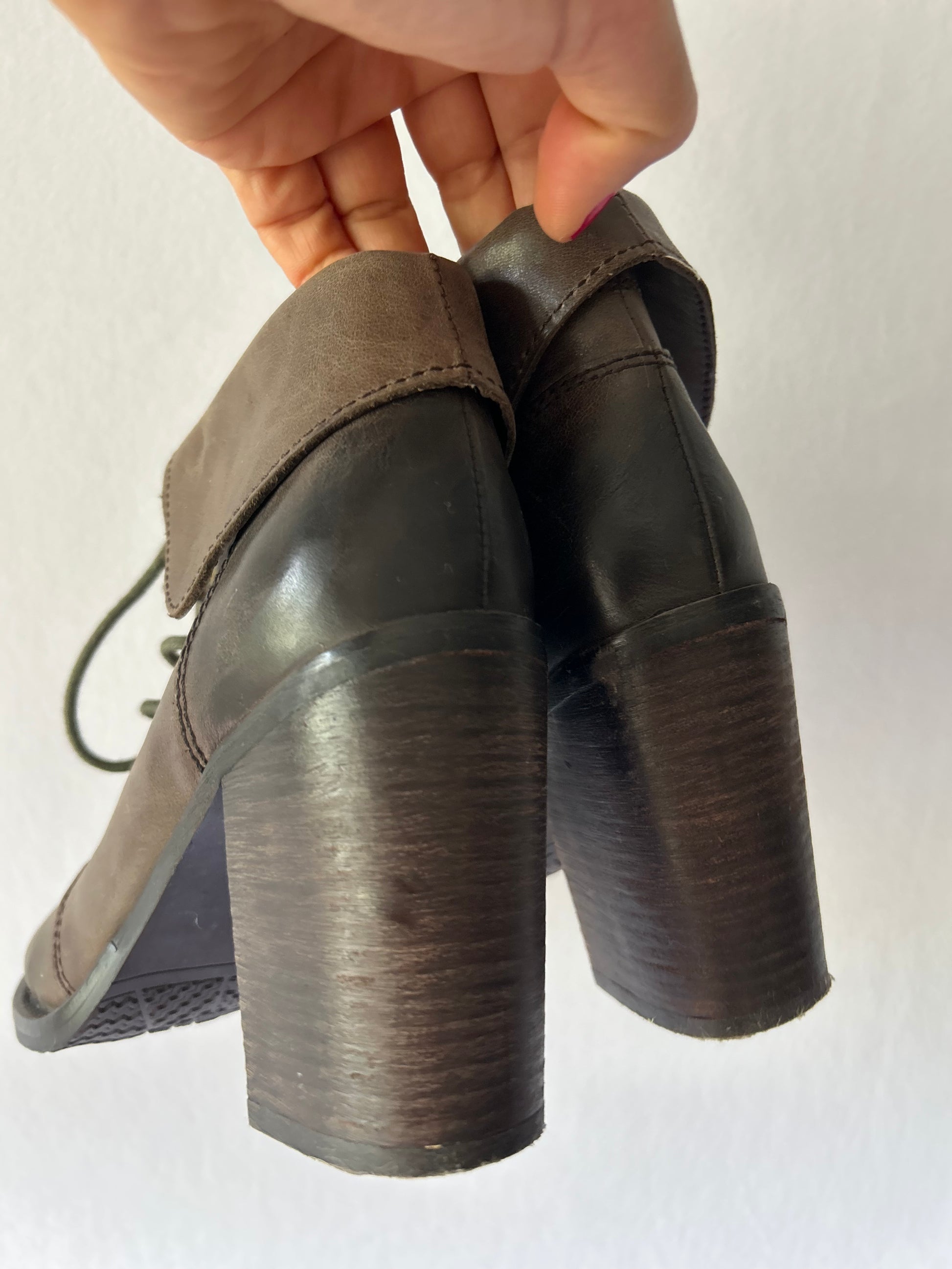 Add a touch of vintage charm and sturdy elegance to your wardrobe with these combat-style ankle boots. Crafted from genuine leather with a rich, distressed finish in shades of taupe/khaki, they exude casual sophistication. The imposing and stable block heel provides height without sacrificing comfort, while the eyelet and lace-up details ensure a secure fit and a timeless look. Perfect for elevating any fall or winter outfit.
