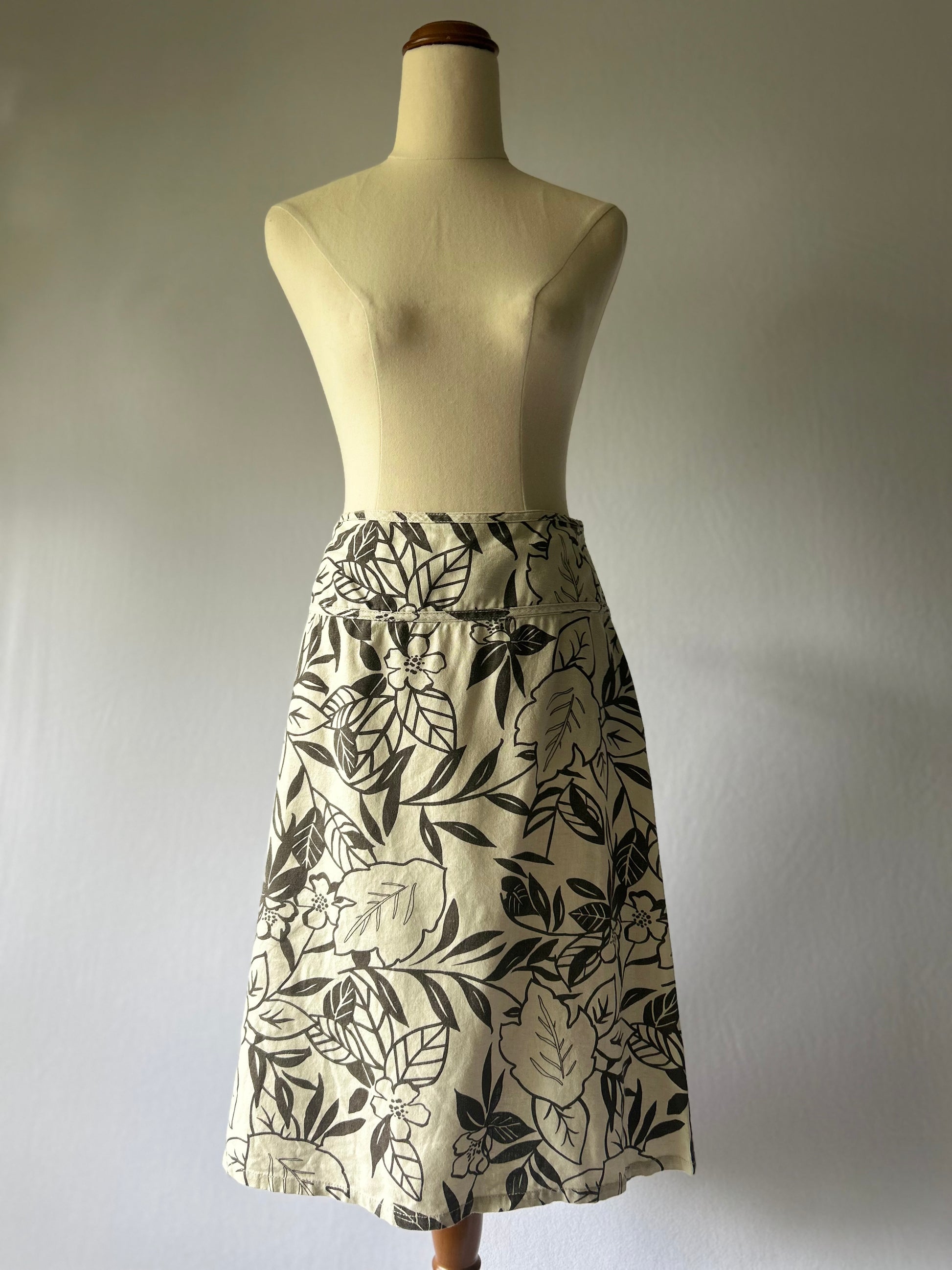 Refresh your wardrobe with this beautiful floral cotton skirt in size 12, a timeless piece that blends comfort and effortless style. Crafted from 100% breathable cotton, this skirt features a neutral beige base with bold black floral prints, making it versatile for both casual outings and dressier occasions.