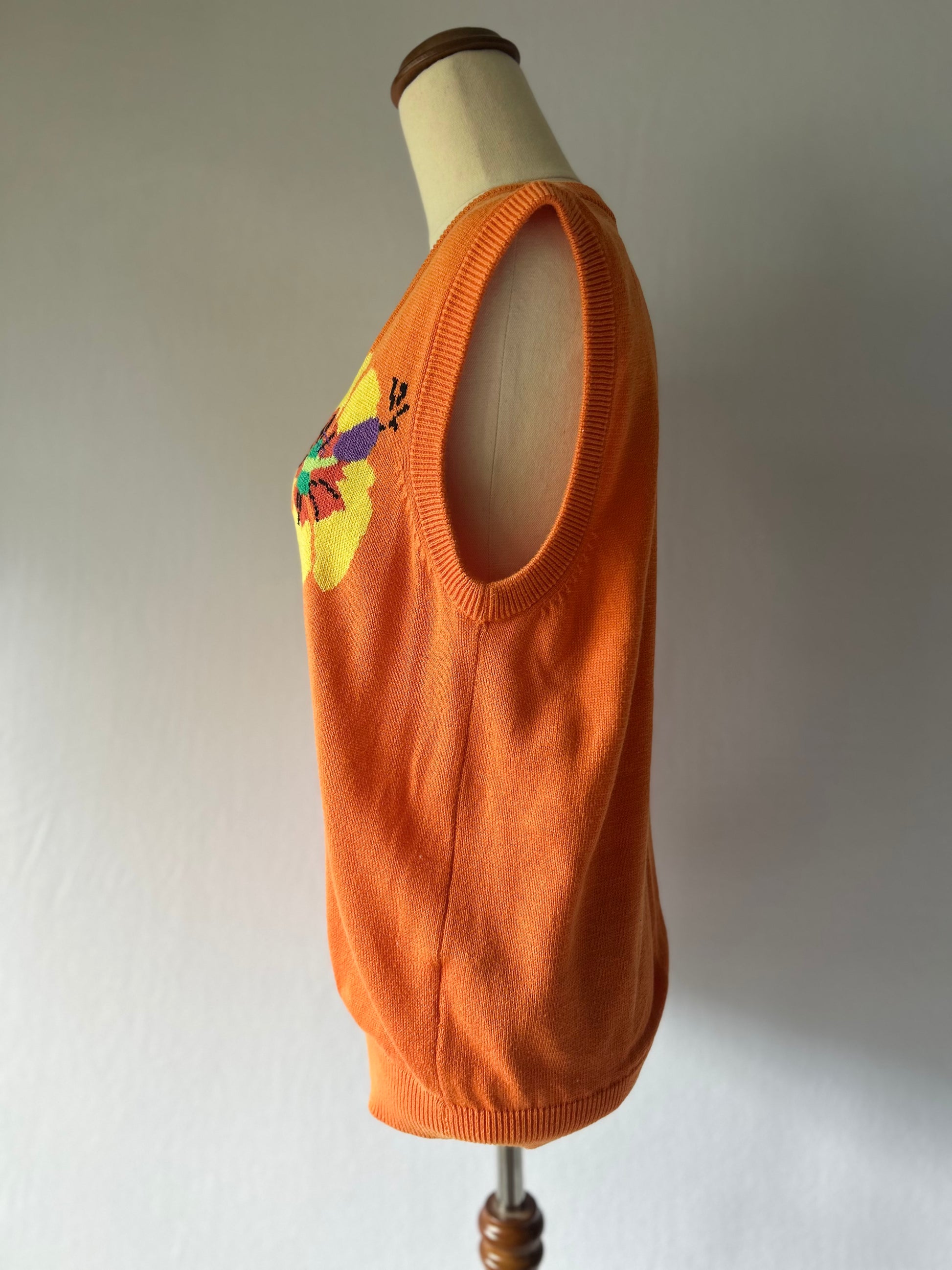 Brighten your look with this vibrant Hibiscus Orange Knit Vest. Crafted from soft, breathable 100% cotton, it offers a cozy yet lightweight feel—perfect for layering through the seasons. The bold orange hue adds a cheerful pop of color, making it a standout piece in any wardrobe.