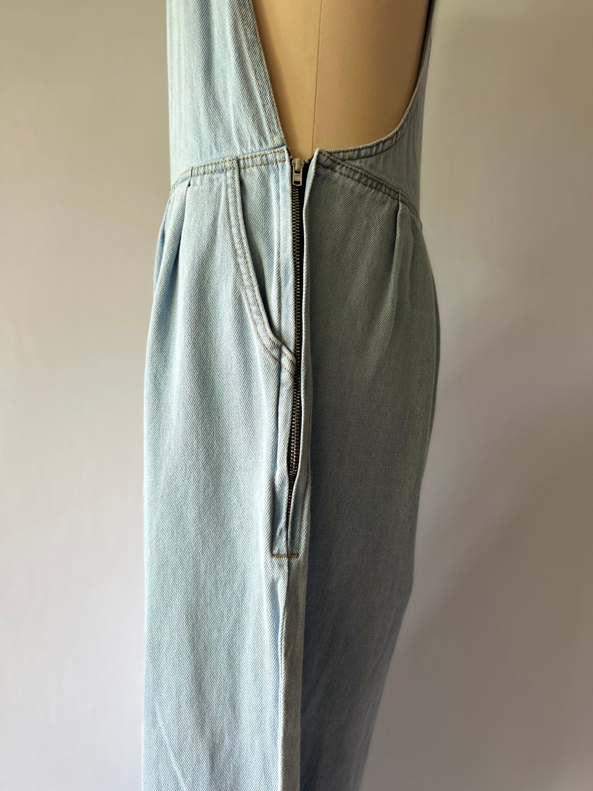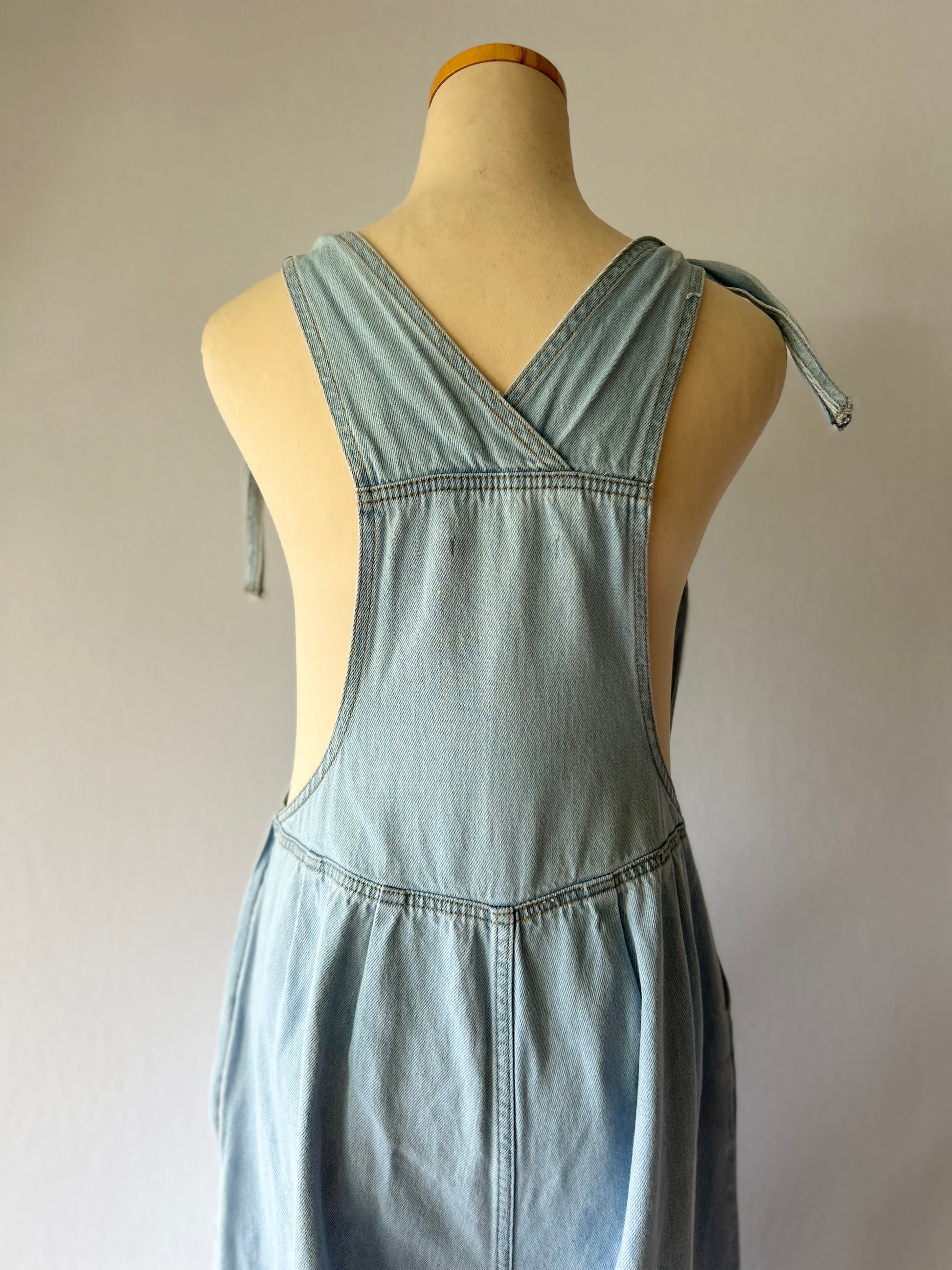 levate your casual style with this incredibly comfortable and chic Light Wash Denim Jumpsuit. Crafted from 100% breathable cotton, this one-piece offers a relaxed fit and a flattering, flowy wide-leg silhouette that’s perfect for all-day wear. The classic light blue denim wash gives it a fresh, vintage-inspired look, while the charming self-tie shoulder straps allow for a customizable fit and add a playful, feminine detail.