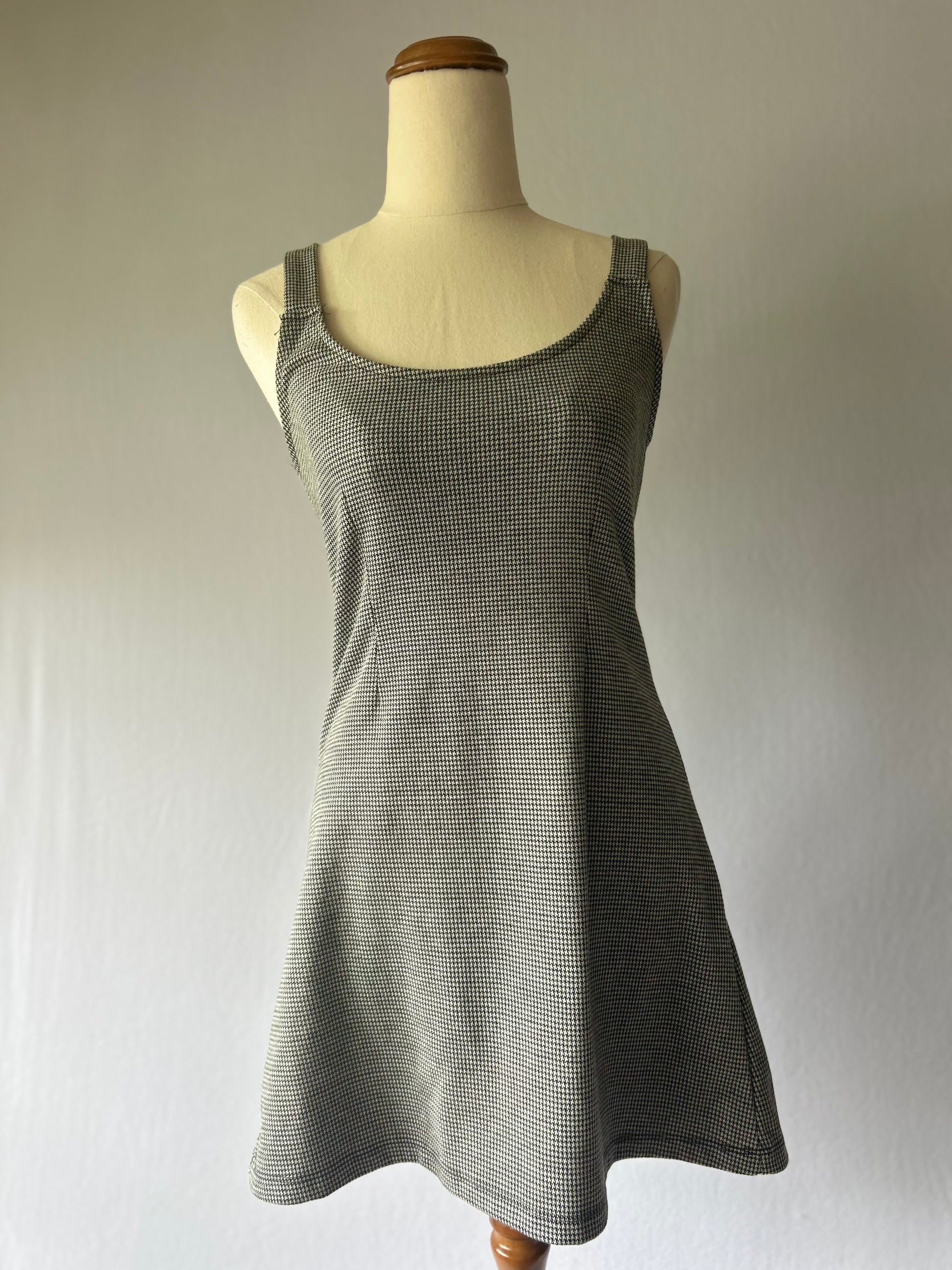 A timeless mini dress featuring a classic black-and-white houndstooth pattern. Made with a soft, stretchy blend of 86% polyester, 12% rayon, and 2% spandex, this piece offers comfort, style, and an effortlessly flattering fit.