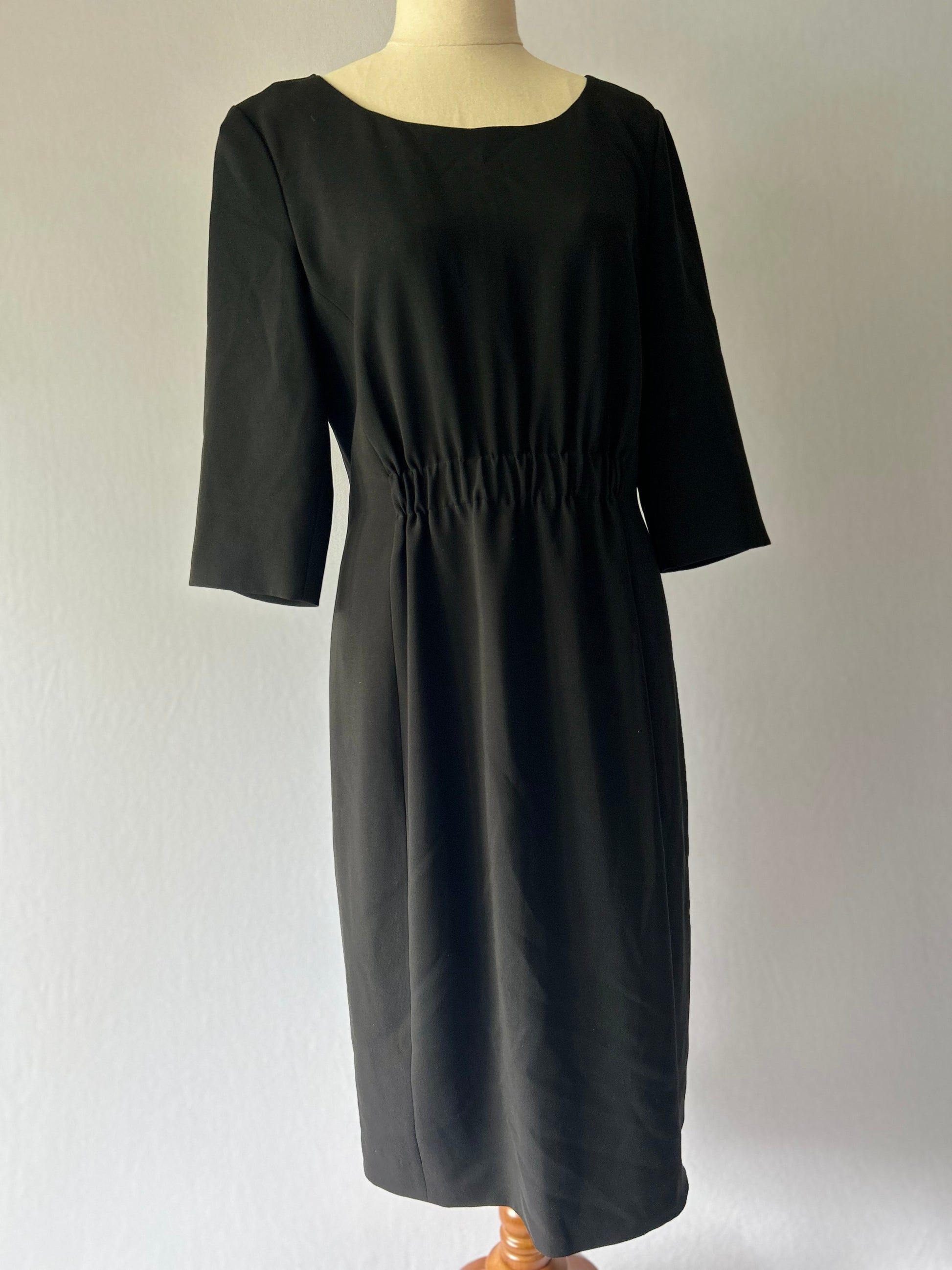 A chic and versatile essential from luxury designer Moschino. This sophisticated black dress is a true wardrobe investment, blending classic tailoring with comfortable, high-quality fabric. It's the perfect piece for professional settings, evening events, or any occasion that requires polished style.