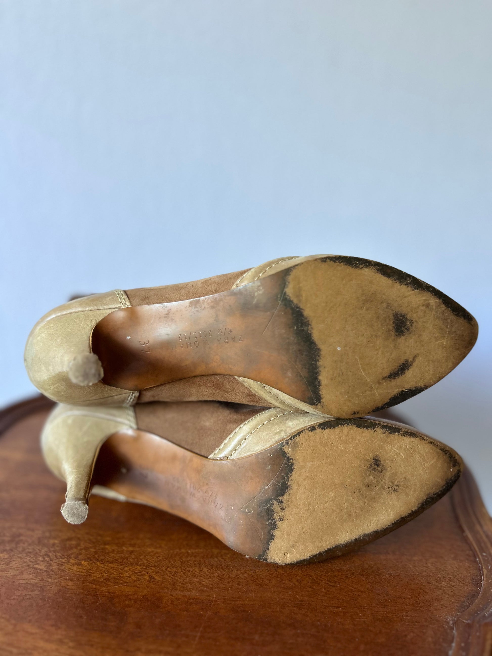 Step into timeless style with these exquisite Zara ankle boots. Featuring a beautiful two-tone design, these boots combine rich tan suede with smooth beige leather accents for a high-end, tonal look.